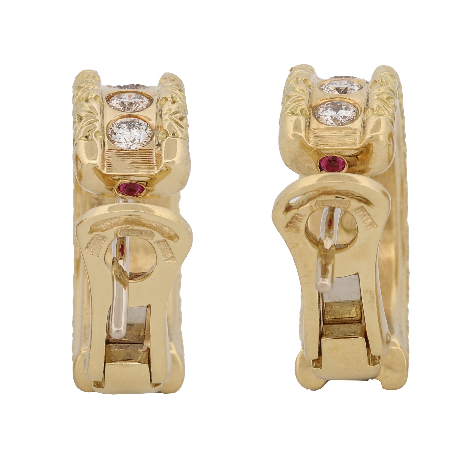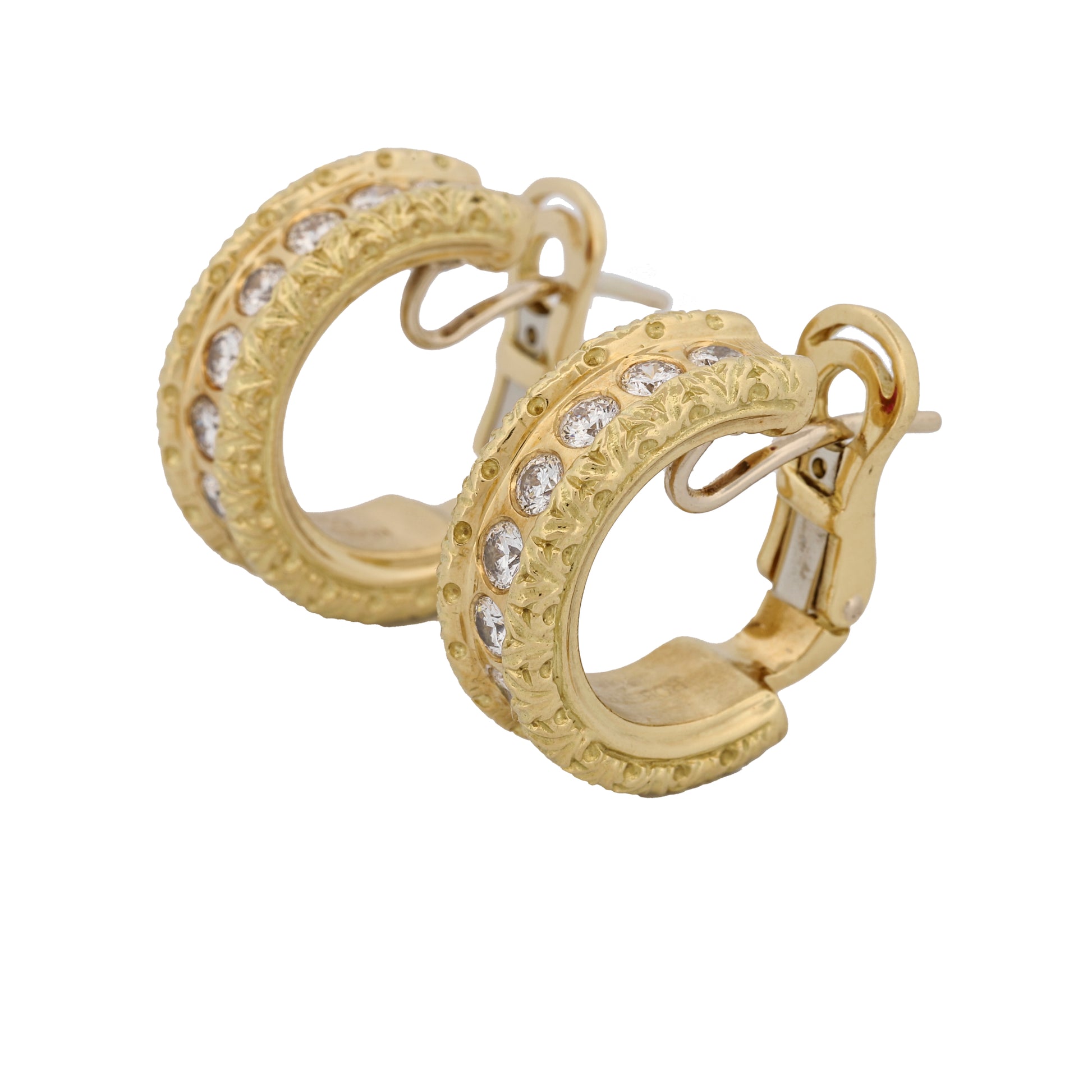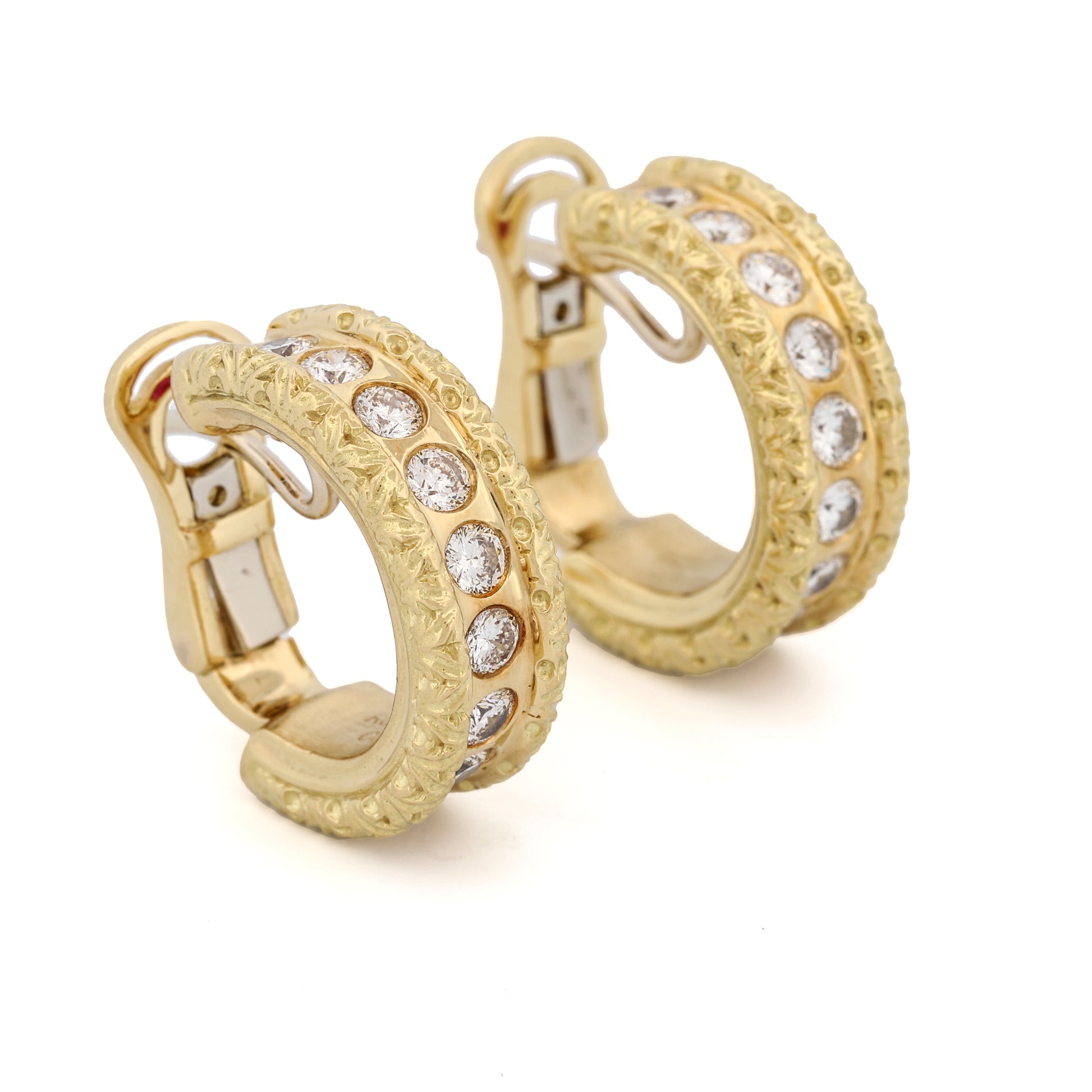 Elevate your style with these exquisite Roberto Coin Florentine Diamond Hoop Earrings, crafted in lustrous 18k yellow gold. These earrings are not just jewelry; they are a symbol of timeless elegance and sophistication.