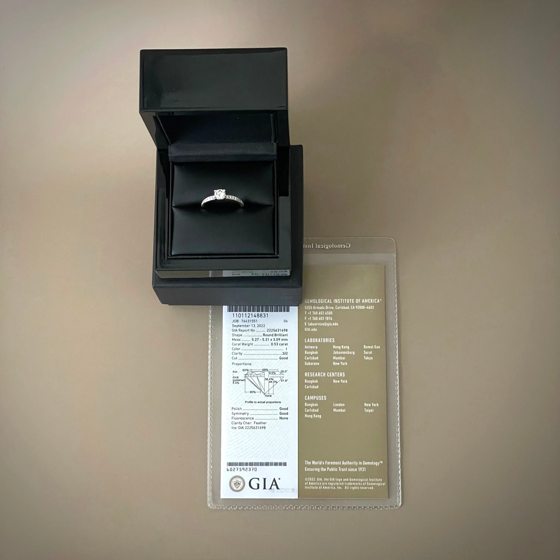 - Center Stone Weight: 0.53 ct